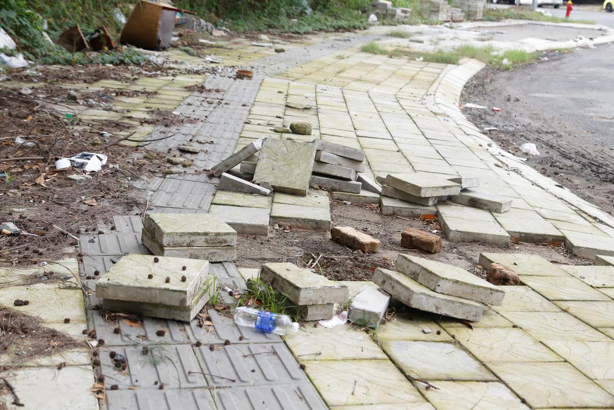 Tại một số tuyến vị trí, do thi công lu lèn không kỹ, hoàn thiện không đúng quy định nên gạch bị bong, có thể dùng tay lật lên khỏi vị trí. Một số nơi tạo thành vũng nước, khi bước chân lên thì nước bắn mất vệ sinh.