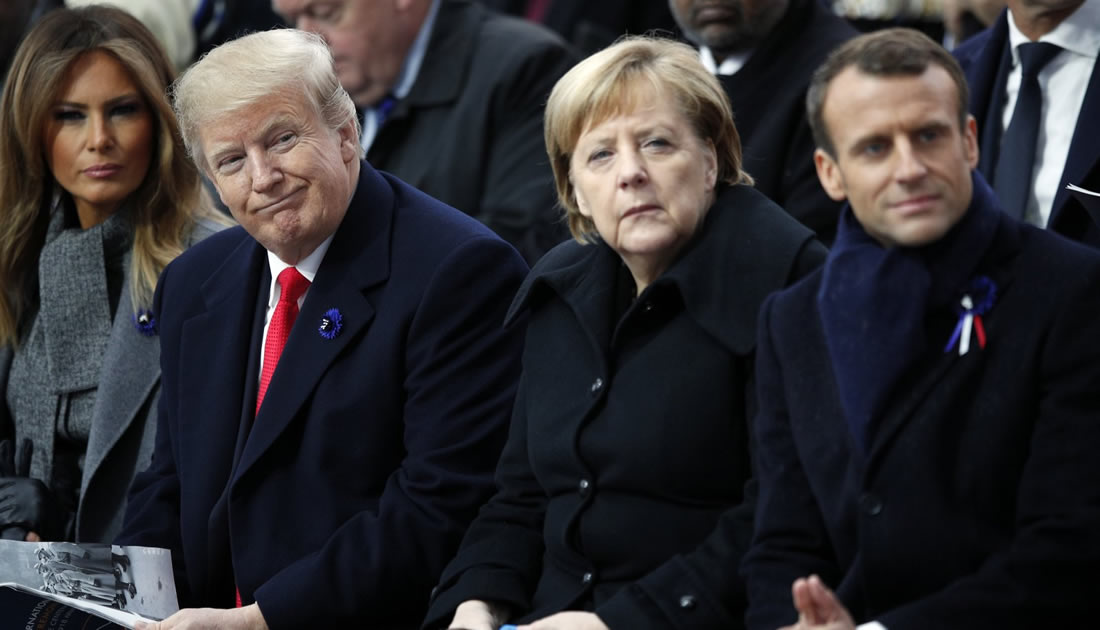 Từ trái qua- Tổng thống Mỹ Donald Trump và phu nhân, Thủ tướng Đức Angela Merkel và Tổng thống Pháp Emmanuel Macron tham dự các buổi lễ tại thủ đô Paris năm 2018. Ảnh: AP |
