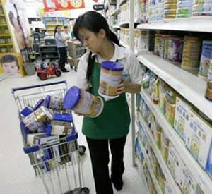 Một siêu thị ở Vũ Hán, tỉnh Hà Bắc cho loại bỏ những loại sữa có chứa chất melamine. Ảnh: AFP |