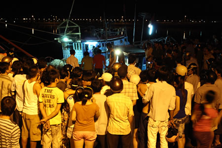 Hiện trường vụ án mạng tại cảng cá Thọ Quang. |