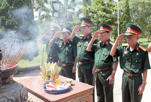 Các cán bộ Hội cựu chiến sĩ bảo vệ Thành cổ Quảng Trị thắp hương tưởng niệm các AHLS |