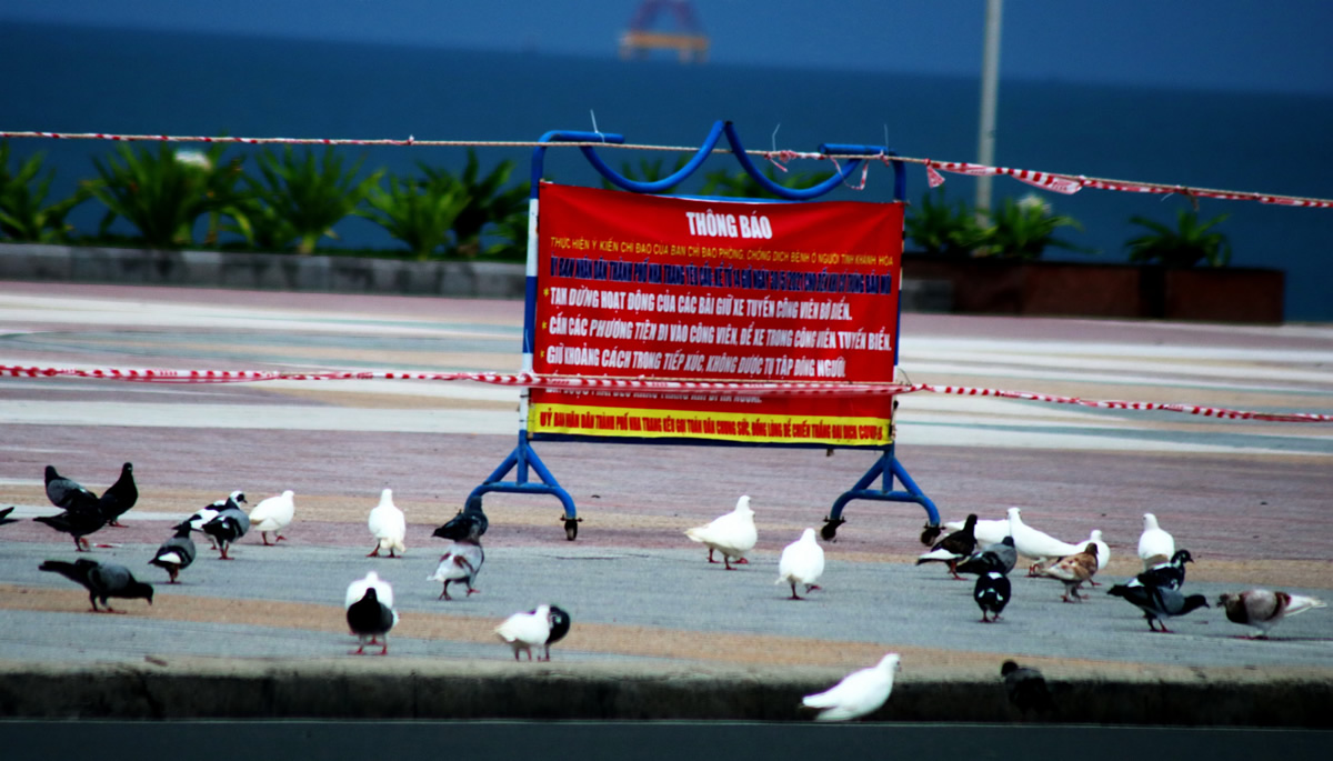 Mùa này Nha Trang vào những ngày giãn cách, thành phố vắng tanh, vắng cả những chuyến xe qua. Những con chim bồ câu ở Quảng trường cứ bay tung. Cái thiếu là thiếu bóng dáng những em nhỏ đòi cha mẹ chở ra, để chính tay mình rải thức ăn cho những con chim bồ câu.