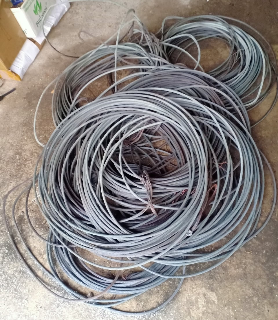 Tang vật dây điện lõi đồng các đối tượng cắt trộm bị CA thu giữ. |