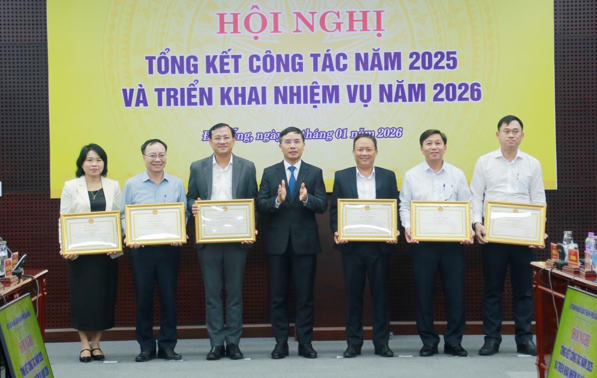Tại Hội nghị, Chủ tịch UBND TP Đà Nẵng cũng đã tặng Bằng khen cho 8 tập thể và 6 cá nhân có thành tích xuất sắc trong phong trào thi đua thực hiện nhiệm vụ KT-XH, QP-AN năm 2025.