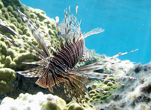 Chú cá sư tử đỏ trong hình đang sống ở vùng