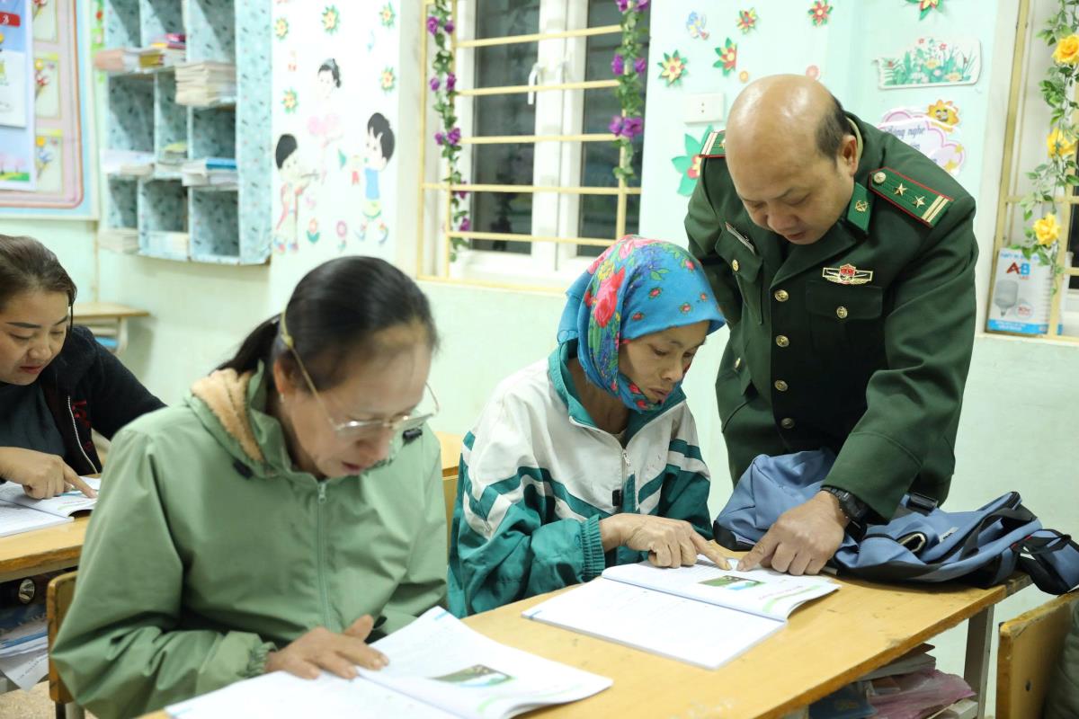 Trung tá Pó chia sẻ, ở nhiều bản vùng sâu, vùng xa như Piêng Vai vẫn còn nhiều người mù chữ, đặc biệt, tình trạng tái mù xảy ra nhiều ở đối tượng phụ nữ. Do ít đi xa, ít có điều kiện tiếp xúc với bên ngoài trong thời gian dài, thiếu môi trường giao tiếp nên họ dần quên đi mặt chữ. Nhận thấy xóa mù chữ là nhiệm vụ then chốt trong công tác vận động quần chúng, tháng 5-2025, được sự nhất trí của Bộ Chỉ huy BĐBP tỉnh và sự đồng thuận của chính quyền địa phương, lớp học xóa mù chữ đặc biệt đã được khai giảng tại bản Piêng Vai.