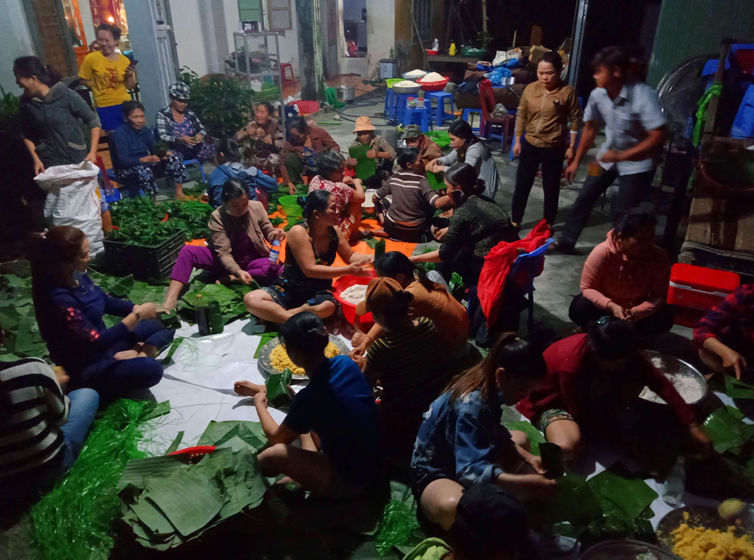 Người dân thôn Phú Sơn Nam (xã Hòa Khương, H. Hòa Vang, TP Đà Nẵng) thâu đêm gói bánh ủng hộ bà con vùng lũ tỉnh Quảng Bình. |