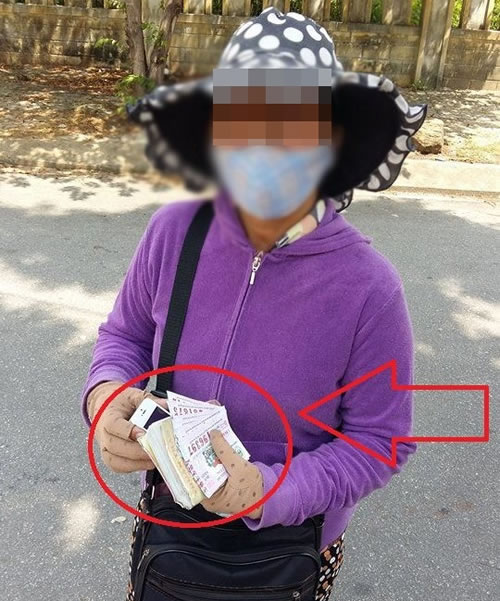 Hình ảnh về 2 người bán vé số “nhờ” tắt Iphone do bạn đọc cung cấp. |