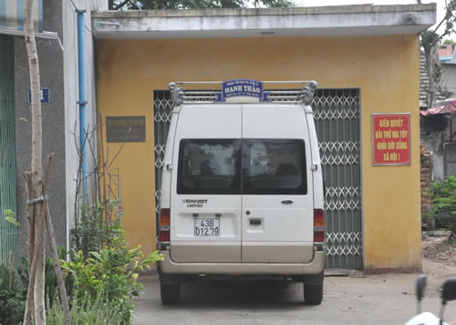 | Xe trợ tang của ông Trần Công Minh đậu trái phép phía trước NSHCĐ trước khi bị di chuyển. |