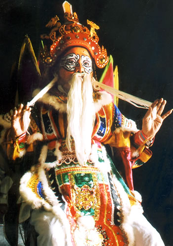 Nghệ nhân La Cháu diễn vai Phàn Định Công trong vở tuồng "Sơn Hậu". |