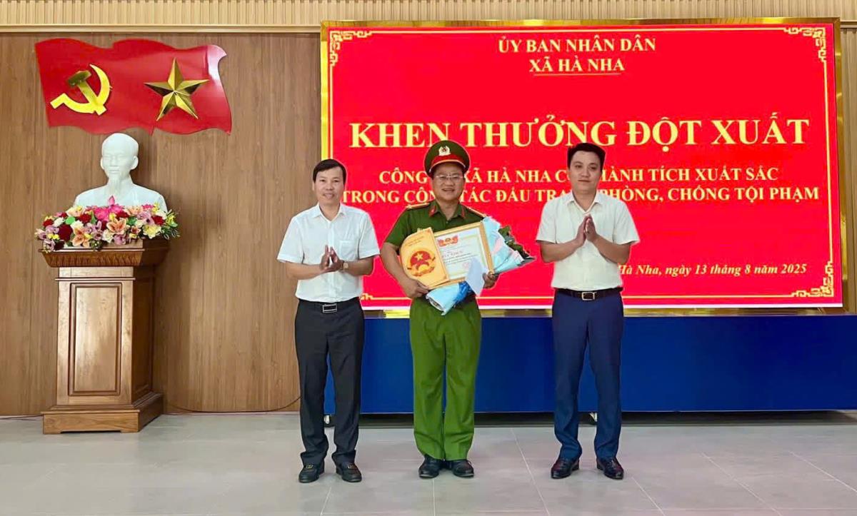 UBND xã Hà Nha khen thưởng lực lượng Công an xã về thành tích trong công tác đấu tranh phòng chống tội phạm.