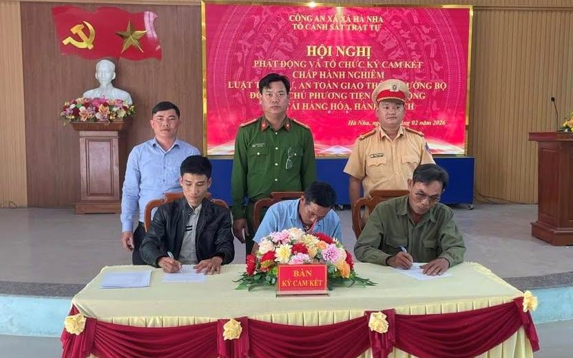 Lực lượng Công an xã Hà Nha tổ chức cho các chủ phương tiện vận tải trên địa bàn xã ký cam kết chấp hành nghiêm Luật Trật tự, an toàn giao thông đường bộ.