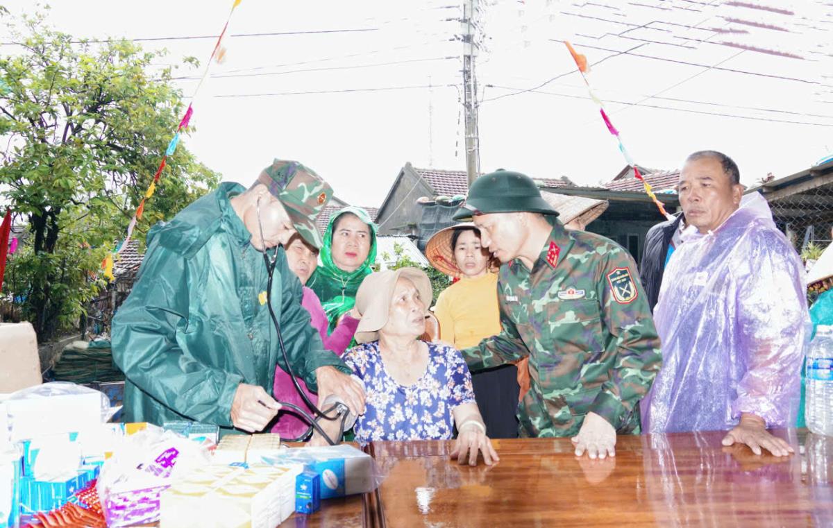 Khám bệnh, cấp thuốc cho người dân sau mưa lũ.