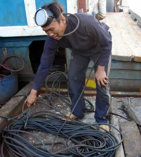 Đứng trên thuyền quan sát, chúng tôi có cảm giác các thợ lặn như những đứa trẻ mới tập bơi khi tiếp xúc với nước biển. Nói vậy là bởi họ đã quen với cách lặn truyền thống, không theo một quy trình cụ thể, cứ ngậm dây hơi, mang gương lặn là có thể tiến hành ca lặn, giờ đây mang trên mình bộ đồ nhái, các thợ lặn cảm thấy bỡ ngỡ. Thế nhưng, chính cái khó chịu đó có thể giúp họ tránh được những tai nạn chết người. Kết thúc ca tập đầu tiên, thợ lặn Trần Văn Huệ (trú Thôn Đông, An Vĩnh) vui vẻ: “Lâu nay lặn theo lối truyền thống, giờ mang đồ cá nhân và đeo thêm chân nhái nên thấy hơi khó chịu. Dù chưa quen, nhưng tin chắc chỉ cần vài ba ngày tập sẽ thành thục vì tất cả đã quen với sông nước rồi.