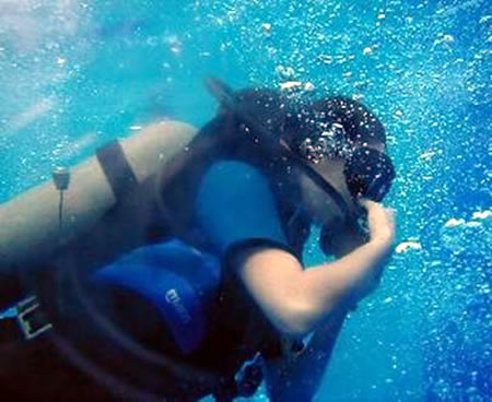 Cuối tháng 3, được sự giới thiệu của người bạn là bác sĩ, chúng tôi theo chiếc thuyền chở hơn 30 người, trong đó có 20 thợ lặn, 4 bác sĩ thuộc Trung tâm Y tế H. Lý Sơn và Sở Y tế tỉnh Quảng Ngãi cùng 5 thành viên trong AFEPS hành trình ra biển thực hiện chương trình “tập lặn” cho những người thợ lặn. Cuộc thuyết trình của ông Ruffez Jean dành cho các thợ lặn được bác sĩ Nguyễn Văn Mùi (đến từ Hải Phòng) thông dịch một cách cặn kẽ trước khi tiến hành “bài học đầu tiên” như: kiểm tra van bình oxy và mở từ từ, không nên mở ép nếu van bị kẹt... Những thợ lặn sau khi được nghe những hướng dẫn và được thăm dò chức năng hô hấp, đo thích lực, điện não... đã khoác trên mình bộ đồ lặn cá nhân lần lượt nhảy xuống biển theo sự hướng dẫn của các bác sĩ kiêm thợ lặn trong AFEPS.