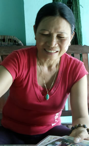 Chị Mân với những tấm ảnh thời bộ đội. |