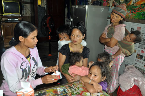 Nữ y sĩ Hiếu hướng dẫn người dân sử dụng thuốc.
