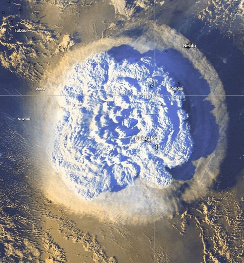 Núi lửa Hunga-Tonga-Hunga-Ha'apai, nằm cách thủ đô Nuku'alofa của Tonga khoảng 65km về phía Bắc. Theo Radio New Zealand, nó lần đầu tiên phun trào hôm 14-1, giải phóng một lượng tro bụi khổng lồ lên không trung khoảng 20km. Những hình ảnh chụp từ vệ tinh cho thấy việc phun trào dữ dội với lớp tro bụi dày đặc phun lên không trung với những tiếng nổ có thể nghe thấy ở khoảng cách 10.000km.