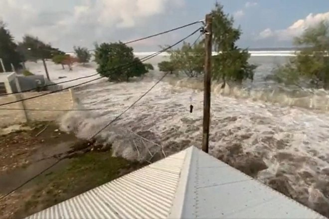 Sóng thần tràn vào thủ đô Nukualofa của Tonga. Ảnh: Stuff.