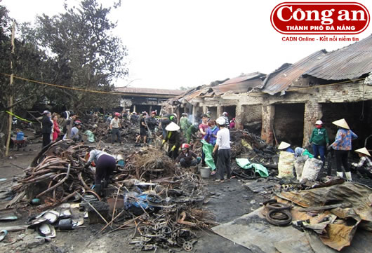 Đi dọc hai dãy ki-ốt bị cháy rụi, chúng tôi bắt gặp từng nhóm tiểu thương đứng nhìn đống tro tàn với ánh mắt bơ phờ. Ngồi một góc gần bên ki-ốt của mình, bà Nguyễn Thị Hồng Phi (1950) khóc không thành tiếng: “Cả đời dành dụm, gia đình tôi tích góp đầu tư mở được 2 ki-ốt, giá trị tài sản hơn 2 tỷ đồng, bây giờ hóa tro hết rồi. Giờ biết làm sao đây hả trời!”. Chứng kiến tại hiện trường chúng tôi không khỏi đau buồn, khi 23 gian hàng bao gồm tất cả các vật dụng như phụ tùng xe máy, sơn, dầu, đồ dùng sinh hoạt… đều cháy thành tro, đen nhẻm, một số phụ tùng xe máy còn sót ít sắt vụn, các tiểu thương cố gắng đào bới trong đống tro tàn để bán sắt vụn.