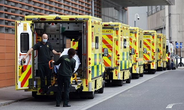Nhân viên y tế chuyển bệnh nhân COVID-19 tới bệnh viện ở London, Anh. Ảnh: AFP