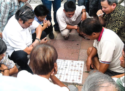 Ông Nguyễn Bá Thanh chơi cờ tướng với người dân ở vỉa hè. Ảnh: ST |