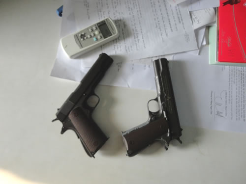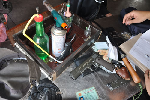 | Súng, bộ đèn khò dùng để sử dụng ma túy và các tang vật liên quan. |
