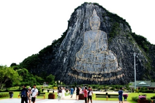 Cách Pattaya gần 30 cây số là Trân Bảo Phật Sơn - Khao Chee Chan. Chuyện kể vào năm 1996 vua Rama thứ IX bị lâm bệnh nặng, chính vị Thái tử của ông đã tìm mọi cách để chữa bệnh cho cha mình nhưng đều không khỏi được. Thái tử đã đến với ngọn núi này cùng với 30 vị sư cả của đất nước khai phong điểm nhãn và tiến hành xẻ đôi quả núi đó ra để khắc lên đó hình tượng Phật Thích Ca Mâu Ni. Ông dùng 999kg vàng dát lên toàn bộ bức tượng Phật. Nhìn từ xa, mọi hướng đều thấy tượng Phật nổi bật. Và đây là điểm đến ai cũng mong một lần ghé đến.