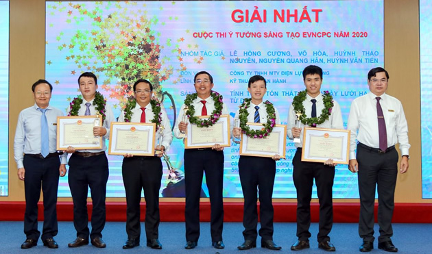 Nhóm tác giả PC Đà Nẵng đạt giải Nhất cuộc thi ý tưởng sáng tạo EVNCPC 2020. |