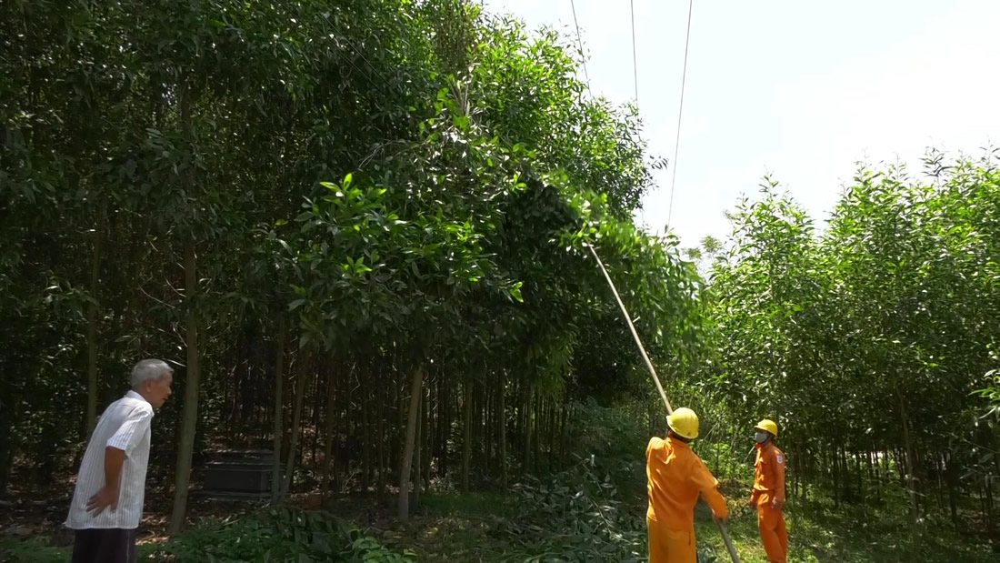 PC Quảng Nam phát tỉa cây trồng ngăn ngừa sự cố lưới điện khi mưa bão. |