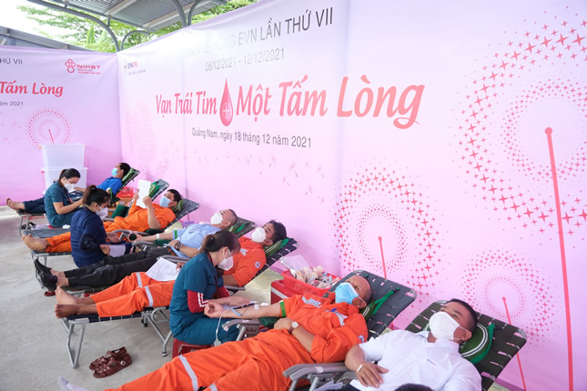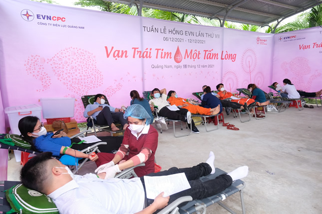 Chào mừng kỷ niệm 67 năm Ngày truyền thống ngành Điện lực Việt Nam (21/12/1954 – 21/12/2021) và hưởng ứng chương trình "Tuần lễ hồng EVN lần VII – năm 2021”, cuối tuần qua, Công đoàn và Đoàn thanh niên Công ty Điện lực Quảng Nam (PC Quảng Nam) phối hợp với Hội Chữ thập đỏ tỉnh Quảng Nam và đơn vị nhận máu là Bệnh viện Đa khoa Trung ương Quảng Nam tổ chức hiến máu tình nguyện với thông điệp “Vạn trái tim – Một tấm lòng”.