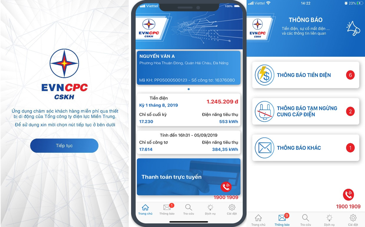 Năm 2016, Tổng công ty Điện lực miền Trung triển khai xây dựng ứng dụng chăm sóc khách hàng (ứng dụng EVNCPC CSKH) trên kho ứng dụng CH Play (đối với hệ điều hành Android) và App Store (đối với hệ điều hành iOS). Việc triển khai ứng dụng EVNCPC CSKH giúp khách hàng tương tác với ngành điện thông qua các tính năng như: thông báo thông tin về tiền điện, lịch cắt điện, sự cố mất điện,… hay tra cứu tình hình sử dụng điện, các điểm và lịch thu tiền điện, biểu đồ phụ tải tương ứng của khách hàng.