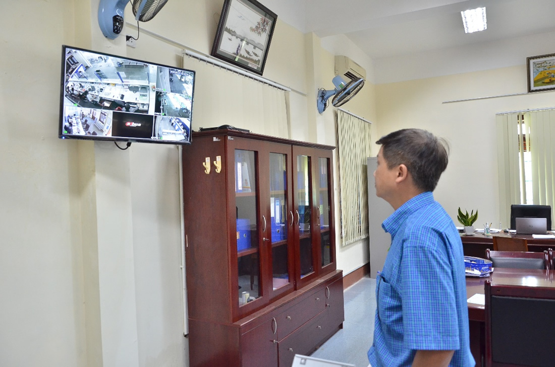 Anh Lương Tuấn Kiệt - TP. Kinh doanh ĐLTP theo dõi hệ thống camera Phòng GDKH. |