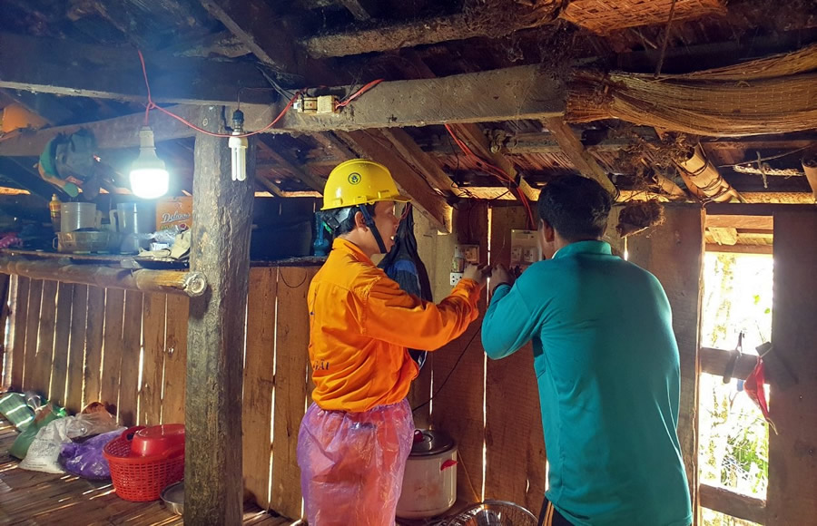 Điện lực Nghĩa Hành đã thực hiện hỗ trợ thay thế miễn phí hệ thống điện trong nhà 10 hộ dân sử dụng điện có hoàn cảnh khó khăn tại Thôn Ruộng Vỡ – xã Hành Tín Đông, huyện Nghĩa Hành (vật tư gồm 10 bóng đèn led tuýp T8 0,6m, 08 bóng led tuýp T8 1,2 mét, 10 ổ cắm, 10 Chuôi đèn vặn xoắn, 10 cái Áp-tô-mát 1 pha 2 cực 40A, Bảng điện trọn bộ 12x15 (2 công tắc+1 ổ cắm)); Cáp đồng bọc 0,6kV MV 2x1,5 mm2: 50m; Cáp đồng bọc 0,6kV MV 2x2,5 mm2: 60m và các phục kiện đi kèm), thực hiện giảm 30% nhân công lắp đặt sau công tơ cho tất cả khách hàng đăng ký cấp điện mới trong tháng 9, 10 và 11/2020: 67 KH, với tổng số tiền nhân công giảm: 3.411.000 đồng.