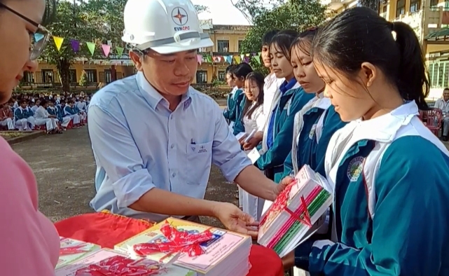 Trao tặng quà cho học sinh nghèo vược khó tại trường Trung học Phổ Thông Sơn Hà. |