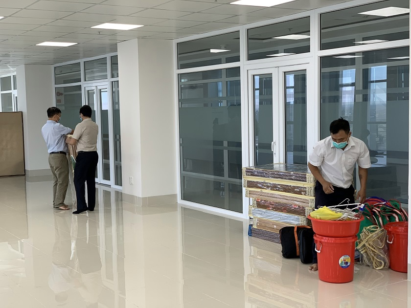 Chuẩn bị khu vực sinh hoạt cho các CBCNV cách ly tập trung. |