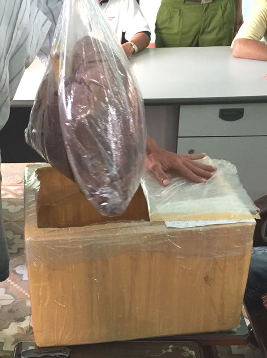 Tại CQĐT, trước tang chứng, vật chứng không thể chối cãi, đối tượng khai nhận là Lê Quang Hòa (1982, trú tổ 10, P. Hòa Xuân, Q. Cẩm Lệ, hiện ở đường Phạm Tứ, P. Khuê Trung, Q. Cẩm Lệ); đối tượng còn lại là D.V.B (1995, trú thôn Cẩm Nê, xã Hòa Tiến, H. Hòa Vang, Đà Nẵng). Tang vật thu giữ là hơn 1kg MTTH dạng “đá” được ngụy trang trong thùng xốp 2 đáy, bên trên chứa mắm tôm, ruốc khô; 1 dao bấm, 1 bình xịt hơi cay và một số tang vật có liên quan.