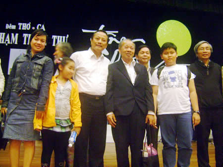 Phạm Thiên Thư (thứ tư từ phải qua) giao lưu với khán giả Đà Nẵng. |
