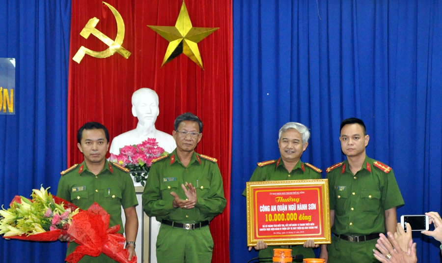 Ðại tá Trần Mưu, Phó Giám đốc Công an TP Đà Nẵng trao danh hiệu thi đua năm 2019 cho CBCS Phòng CSHS. |