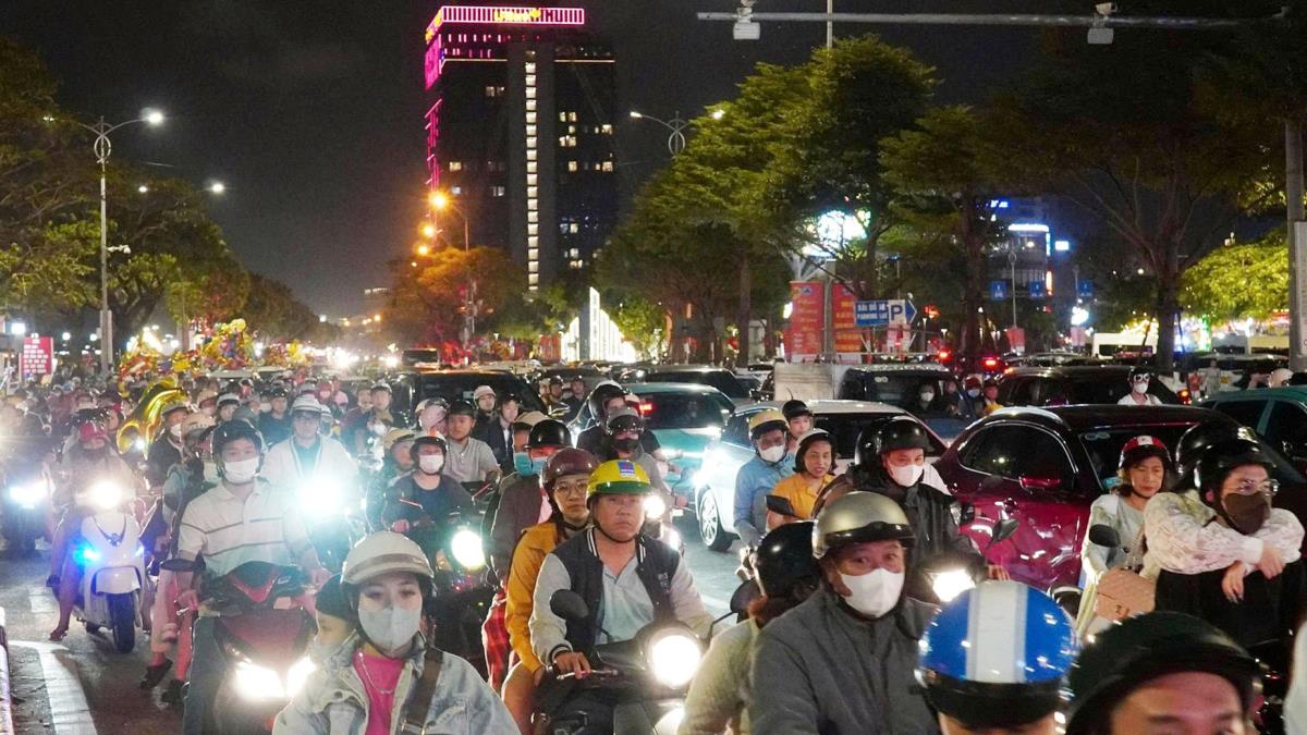 Dòng người du xuân trên đường Nguyễn Văn Linh