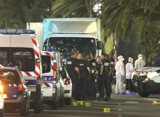 Sáng sớm 15-7, Tổng thống Pháp cắt ngắn chuyến công du trong nước ở miền nam Avignon để trở về thủ đô Paris tiến hành họp khẩn cấp. Phát biểu trước đài truyền hình BFM, một nghị sĩ Pháp cho biết cảnh sát tìm thấy nhiều khẩu súng và lựu đạn trên chiếc xe tải trên. Theo một số quan chức chính quyền Pháp, nhiều khả năng đây là một vụ tấn công khủng bố. Tuy nhiên, một phát ngôn viên của Bộ Nội vụ Pháp cho biết không có tình huống bắt con tin tại Nice và hiện chưa rõ động cơ của kẻ tấn công.