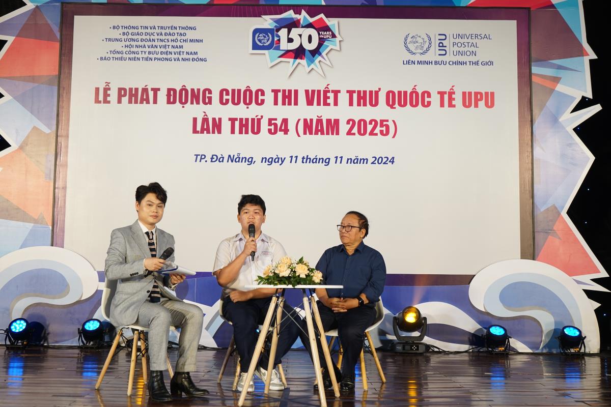 Sáng 11-11, tại trường THCS và THPT Nguyễn Khuyến (TP Đà Nẵng), Bộ Thông tin và Truyền thông phối hợp với Bộ Giáo dục và Đào tạo, Trung ương Đoàn TNCS Hồ Chí Minh, Hội Nhà văn Việt Nam, Tổng Công ty Bưu điện Việt Nam và Báo Thiếu niên Tiền phong & Nhi đồng tổ chức Lễ phát động cuộc thi Viết thư quốc tế UPU lần thứ 54, năm 2025.
