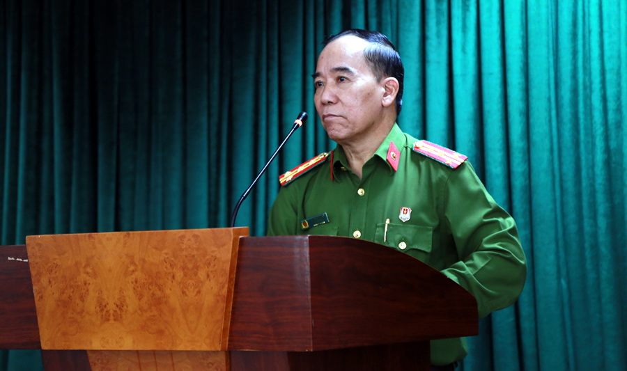 Đại tá Lê Quốc Dân phát biểu chỉ đạo tại hội nghị. |
