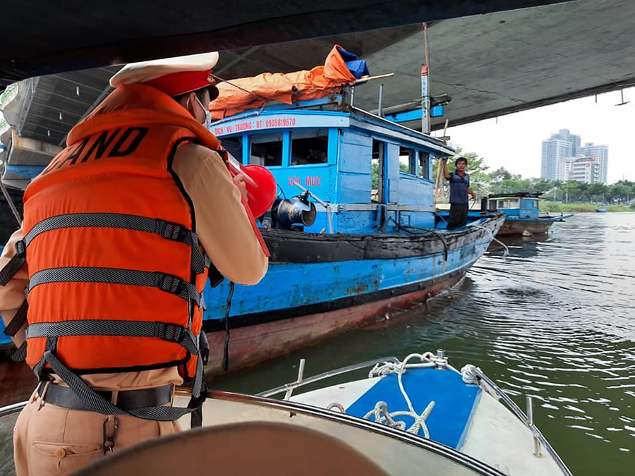 CSGT đường thủy tuyên truyền, nhắc nhở người dân. |