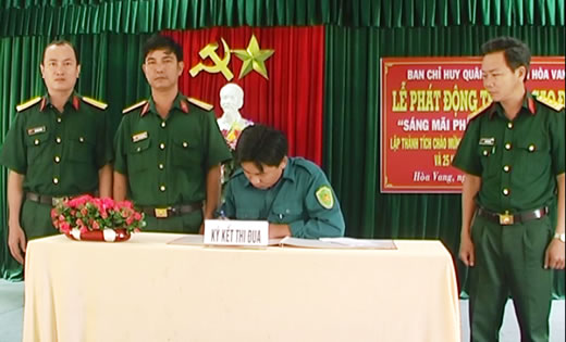 | Các lực lượng quân sự H. Hòa Vang ký kết thi đua. |