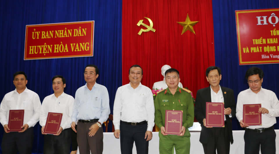 Lãnh đạo UBND H. Hòa Vang chứng kiến đại diện các ban ngành, xã ký kết thi đua. |