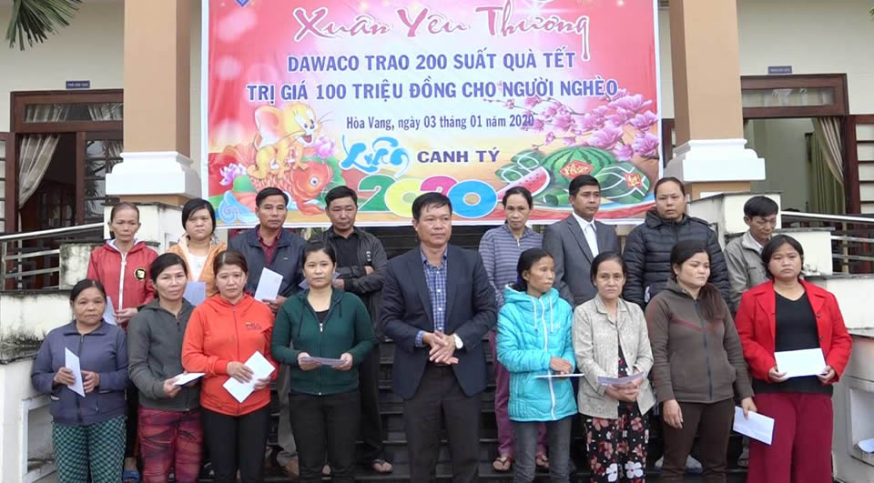 Cty Cổ phần Cấp nước Đà Nẵng tặng quà Tết cho các hộ nghèo H. Hòa Vang. |