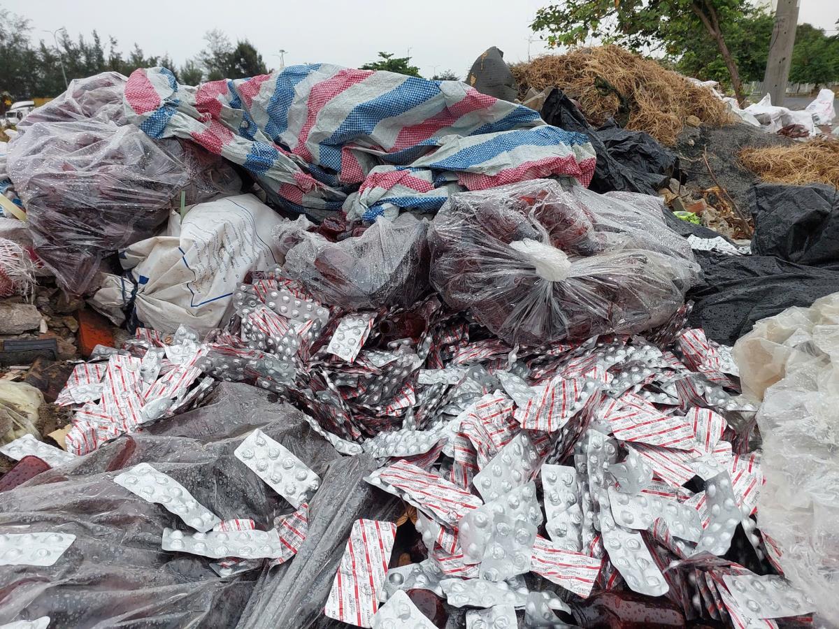 Phát hiện hàng trăm vỉ thuốc tân dược còn hạn sử dụng nhưng bị vứt bỏ tại bãi rác ven đường