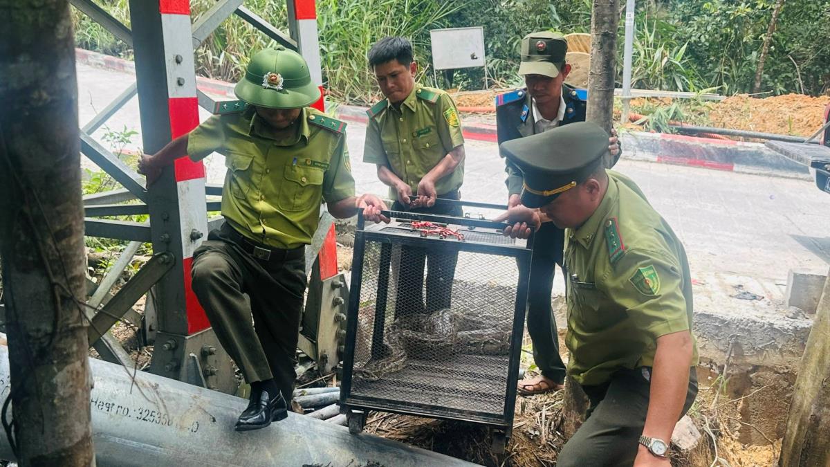 Qua xác định, đây là trăn gấm-loài động vật hoang dã quý hiếm, có chiều dài khoảng 3,5m, nặng gần 16kg. Sau khi hoàn tất các thủ tục cần thiết và đảm bảo điều kiện an toàn, lực lượng chức năng đã tiến hành thả cá thể trăn về rừng ngay trong ngày 18-3.