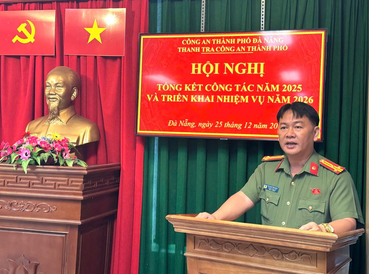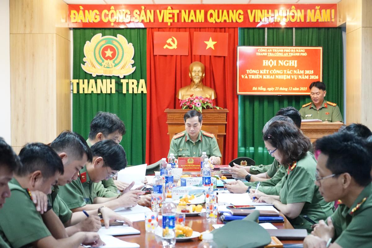 Sáng 25-12, Thanh tra Công an TP (CATP) Đà Nẵng tổ chức Hội nghị tổng kết công tác năm 2025 và triển khai nhiệm vụ năm 2026. Đây là hội nghị có ý nghĩa quan trọng nhằm đánh giá toàn diện kết quả thực hiện nhiệm vụ công tác thanh tra trong năm qua, đồng thời xác định phương hướng, nhiệm vụ, giải pháp nâng cao chất lượng, hiệu quả công tác trong thời gian tới. Đại tá Nguyễn Xuân Hoàng- Phó Giám đốc Công an TP Đà Nẵng dự và chỉ đạo hội nghị.